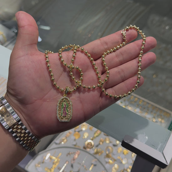 ¡Super Promoción! Cadena Militar Oro Laminado 18k Rosada Dije Virgen Guadalupe Grande