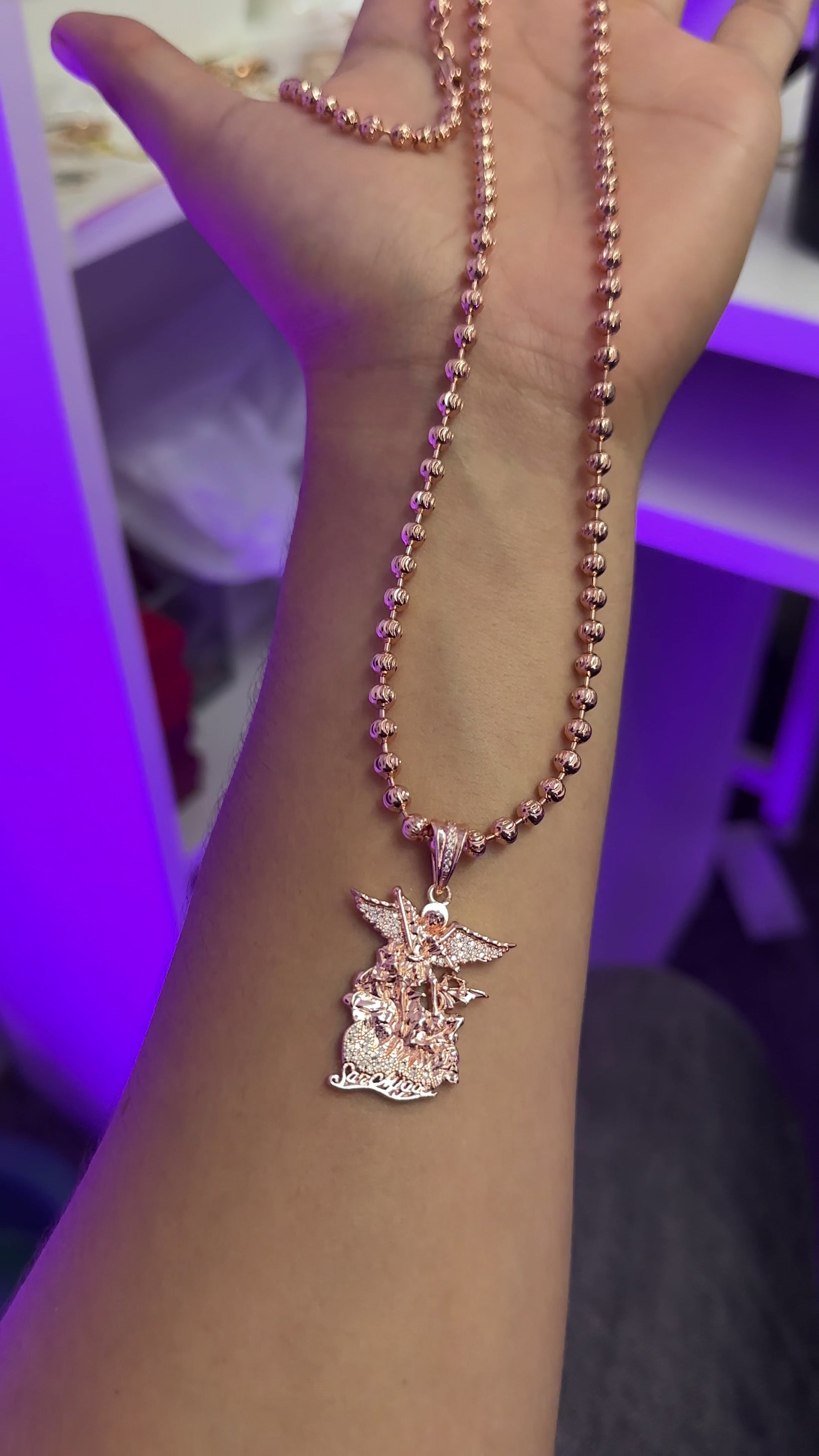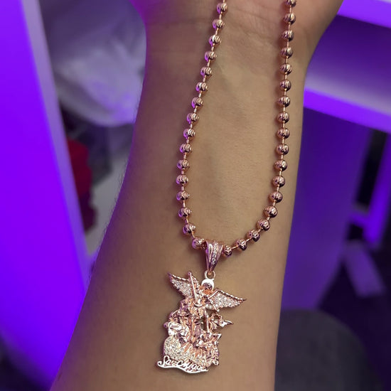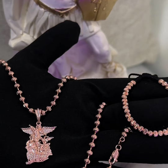 ¡Super Promoción! Cadena Militar Oro Rosada Laminado 18k con Dije san miguel Arcangel Rosado